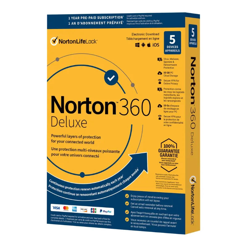 This is a one year pre-paid subcription of Norton 360 Deluxe for 5 devices.